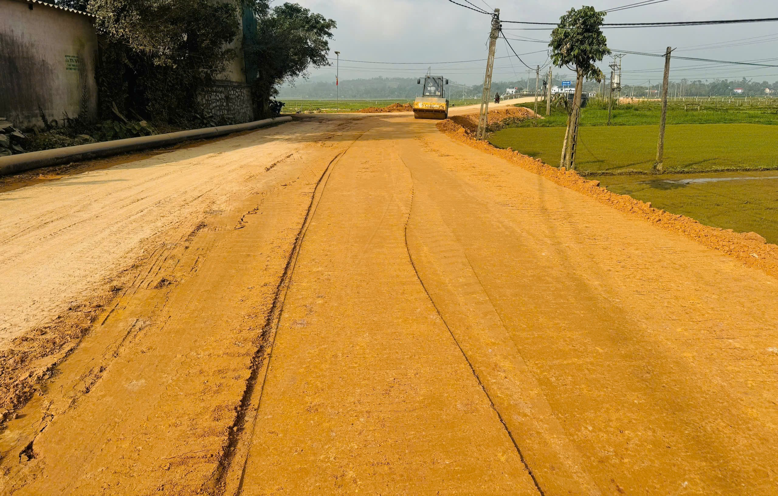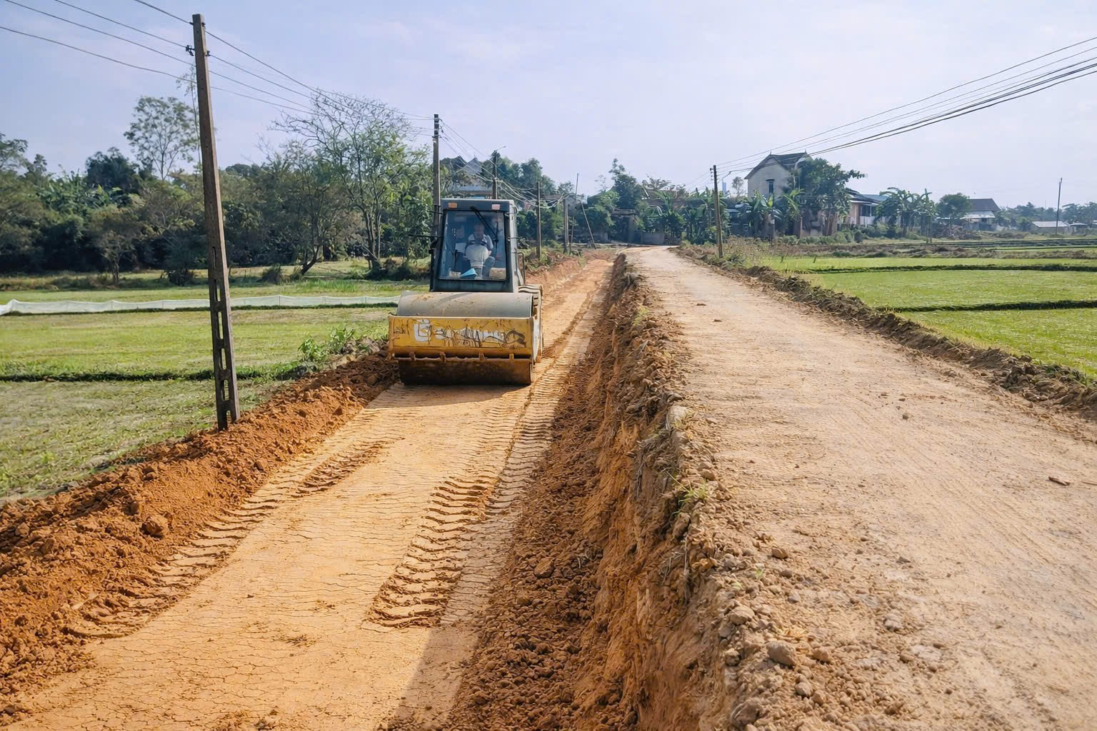 Tuyến đường được mở rộng, lu lèn nền đường, từng bước hoàn thiện hệ thống giao thông nông thôn.