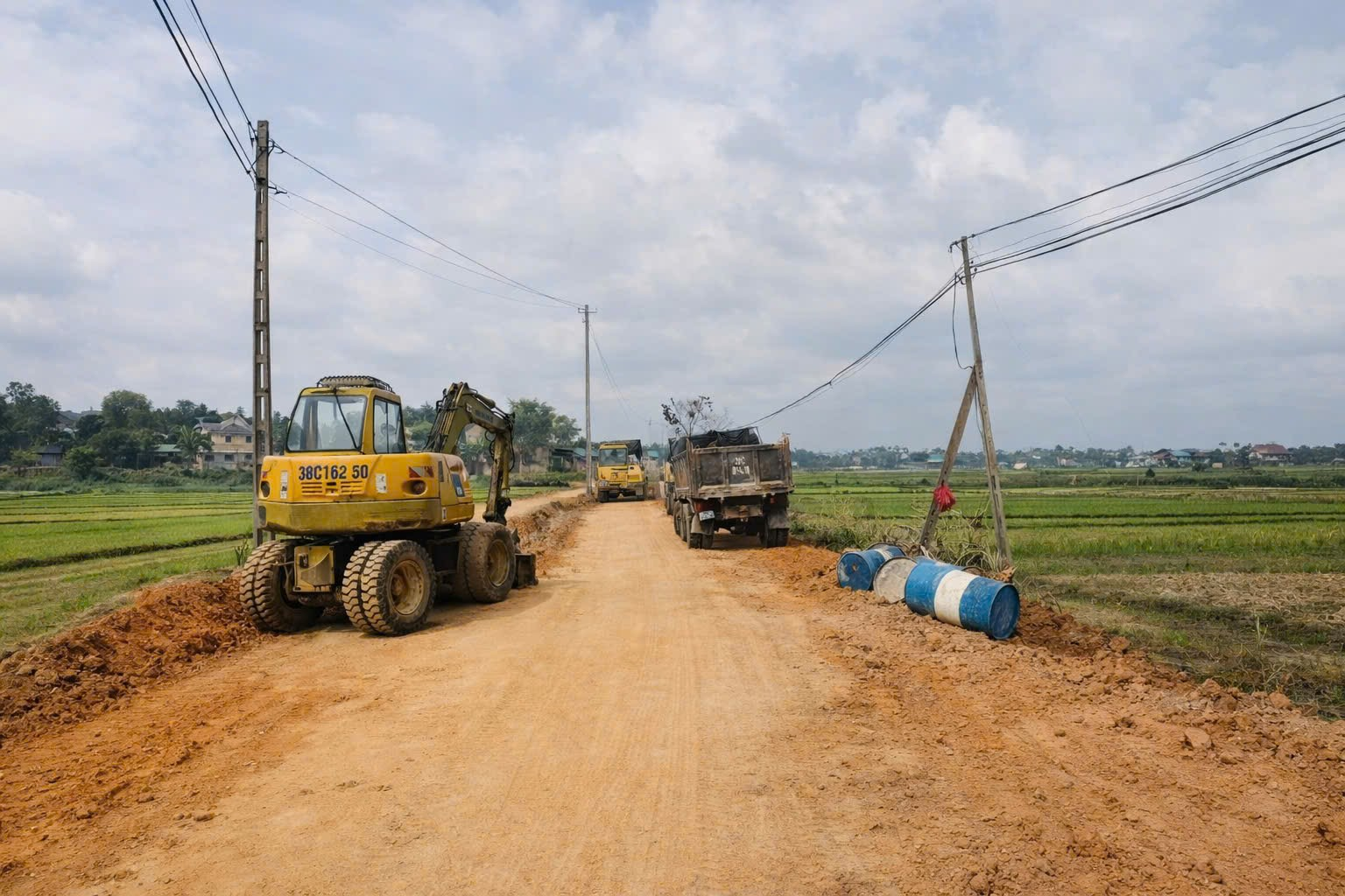 Thi công tuyến đường trục xã từ Ngã ba Sơn An cũ đi qua Cầu Bà Nậm thôn Trung Lễ đến đường ADB