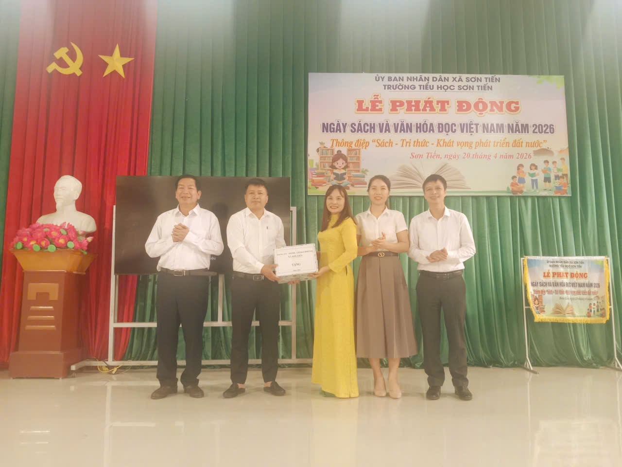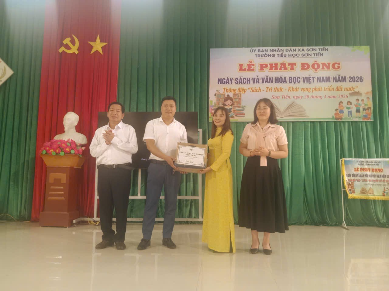 Nhân dịp này, UBND xã Sơn Tiến và Công ty Cổ phần Đầu tư Phát triển Giáo dục Miền Trung đã trao tặng nhiều đầu sách cho nhà trường, góp phần bổ sung nguồn tài liệu phục vụ công tác dạy và học.