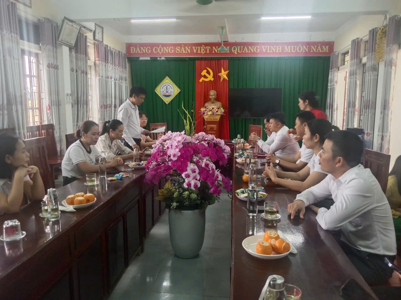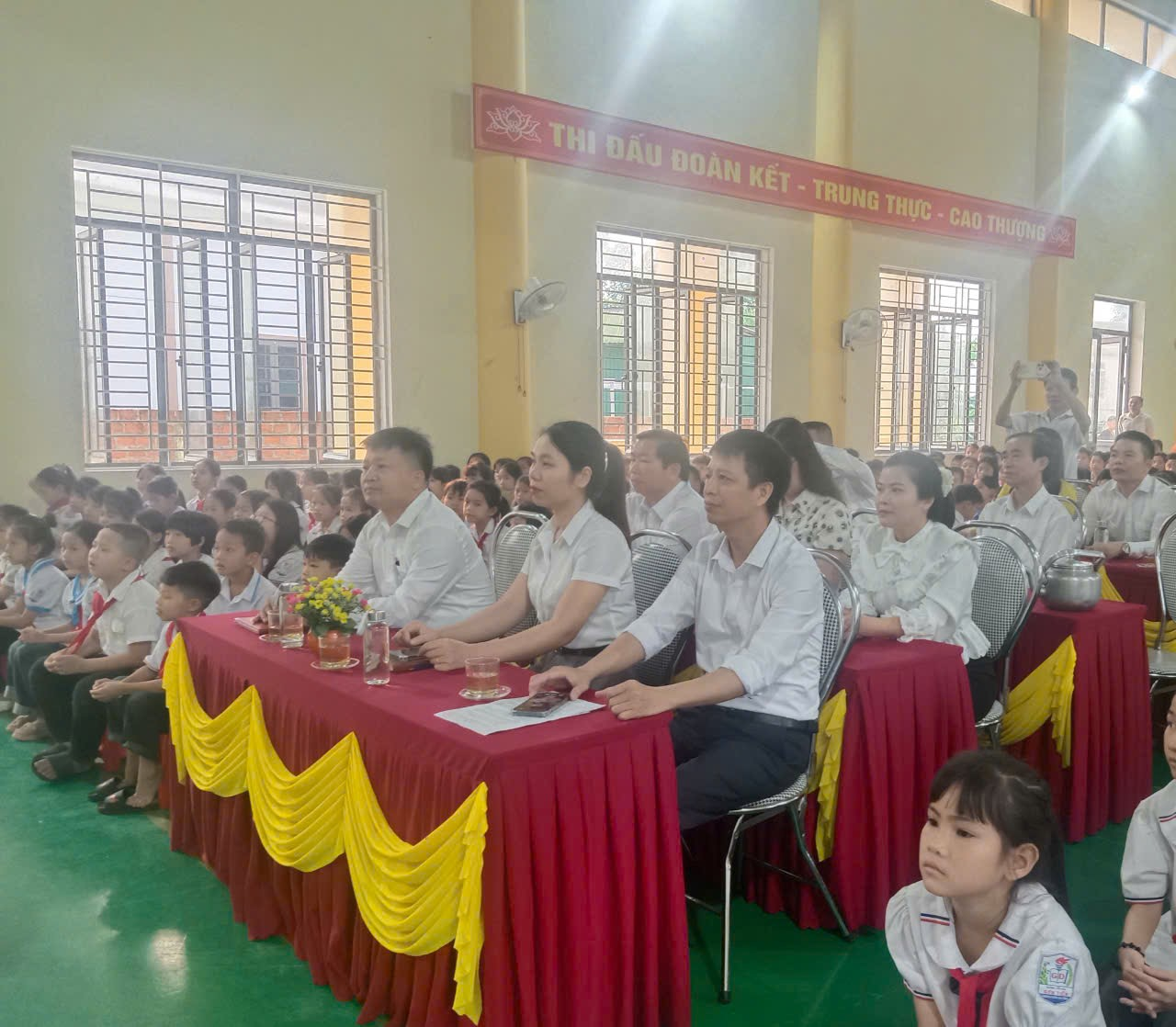 Tham dự buổi lễ có đại diện lãnh đạo Đảng ủy, lãnh đạo UBND xã; Phòng Văn hóa - Xã hội; đại diện các ban, ngành, đoàn thể cấp xã; đại diện lãnh đạo các trường học trên địa bàn; đại diện Hội Phụ huynh học sinh, cùng toàn thể cán bộ, giáo viên và học sinh nhà trường. Đặc biệt cùng về tham dự có ông Trần Đình Quang – Trưởng phòng Kinh doanh, Công ty Cổ phần Đầu tư Phát triển Giáo dục Miền Trung.