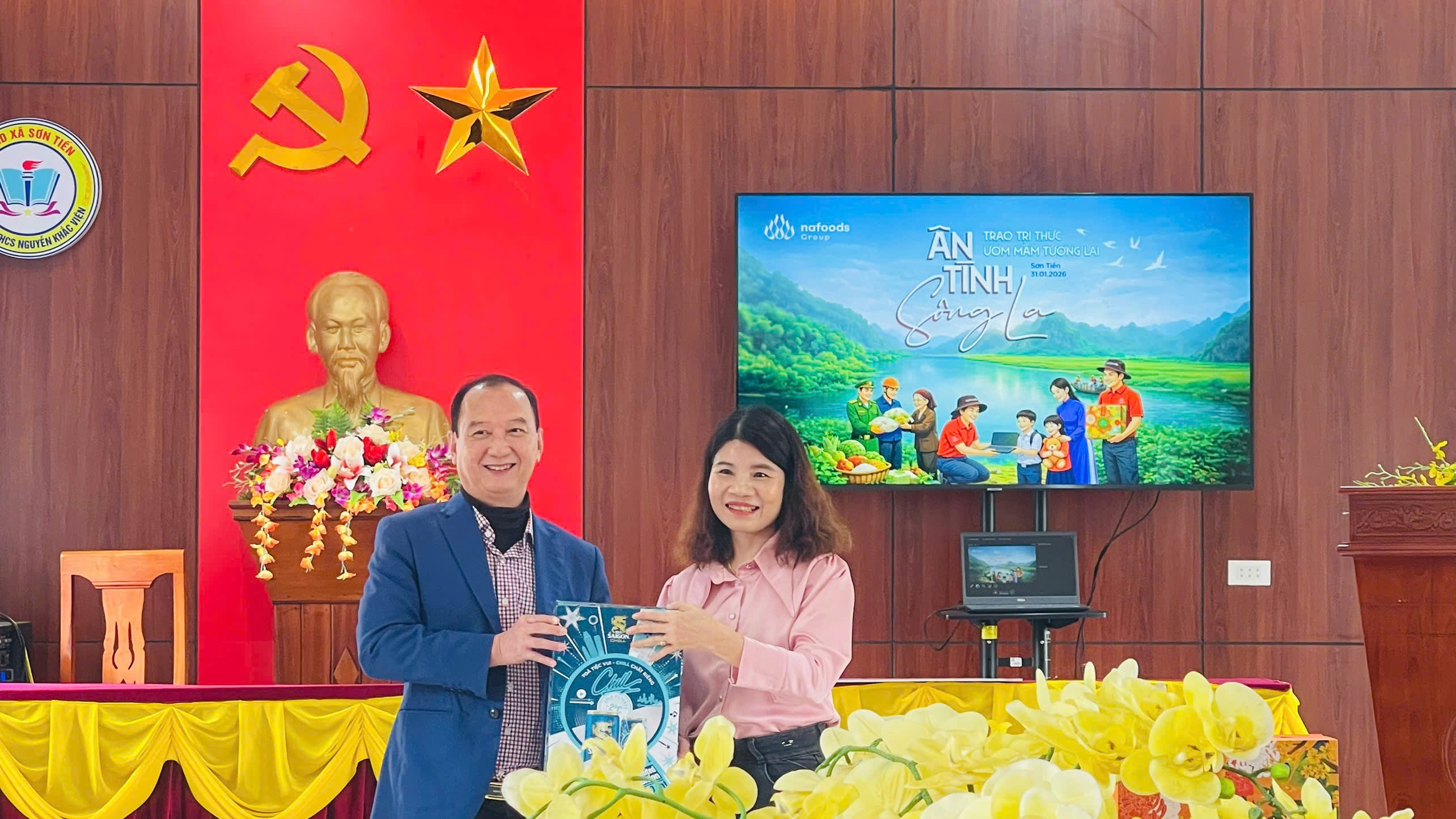 Tại buổi tiếp nhận, đại diện nhà trường bày tỏ sự cảm ơn sâu sắc tới Ban Lãnh đạo và tập thể cán bộ, nhân viên Công ty Nafoods Group đã quan tâm, hỗ trợ. Đồng thời, trân trọng cảm ơn sự quan tâm, kết nối của lãnh đạo Đảng ủy, HĐND, UBND, Ủy ban MTTQ xã Sơn Tiến, tạo điều kiện để nhà trường nhận được sự hỗ trợ ý nghĩa này.